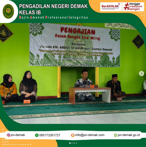Pengajian dalam rangka Isra Miraj bersama KH. Abdul Syakur dari Guntur Demak. Acara tersebut dilaksanakan di Mushola Al Hakim PN Demak.