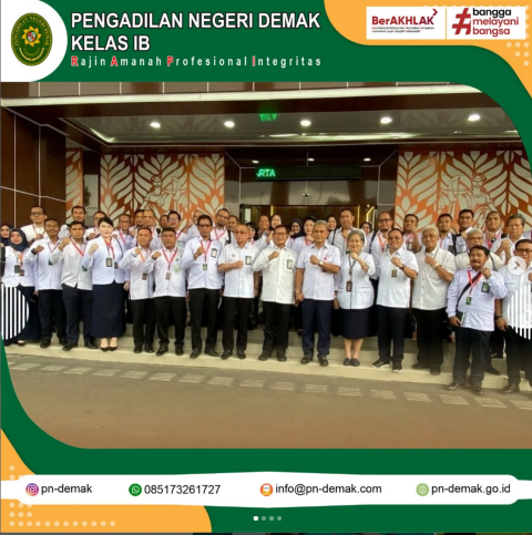 Studi Banding dalam rangka studi tiru terkait layanan dan inovasi yang ada pada Pengadilan Tinggi DKI Jakarta Konten : berita kegiatan Telah dibaca : 31 Kali Jakarta - (17/02/2025) Ketua Pengadilan Negeri Demak, Bapak Muhamad Fauzan Haryadi, S.H., M.H. menghadiri Undangan Studi Banding dalam rangka studi tiru terkait layanan dan inovasi yang ada pada Pengadilan Tinggi DKI Jakarta. « kembali