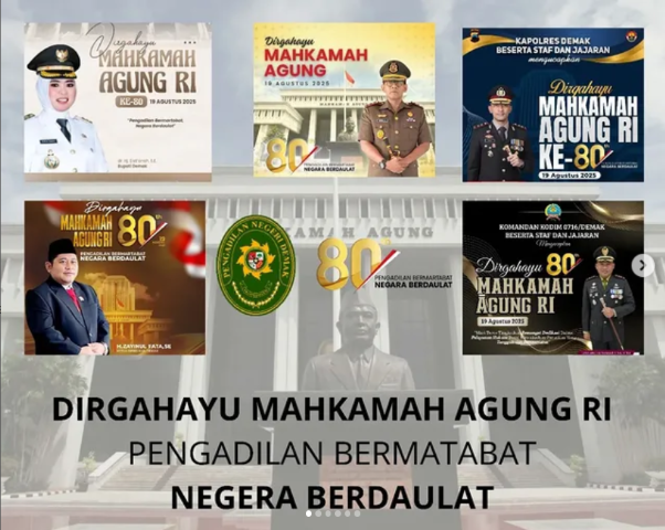 Terimakasih FORKOPIMDA Kabupaten Demak atas ucapan Dirgahayu Mahkamah Agung RI Ke-80 Konten : berita kegiatan Telah dibaca : 33 Kali Demak - 21 Agustus 2025 Terimakasih FORKOPIMDA Kabupaten Demak atas ucapan Dirgahayu Mahkamah Agung RI Ke-80 "Pengadilan Bermartabat, Nagara Berdaulat" « kembali