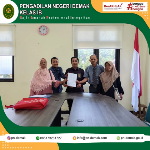 Hakim Mediator Pengadilan Negeri Demak Bapak Ahmad Syairozi, SH., berhasil menyelesaikan perkara perdata dengan PERDAMAIAN dalam perkara No.62/ Pdt.G/2025/ PN Dmk.