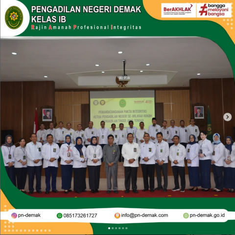 Ketua Pengadilan Negeri Demak, Ibu Niken Rochayati, S.H., M.H. menghadiri kegiatan Penandatanganan Pakta Integritas Ketua Pengadilan Negeri se-Wilayah Hukum Pengadilan Tinggi Jawa Tengah yang bertempat di Pengadilan Tinggi Jawa Tengah.