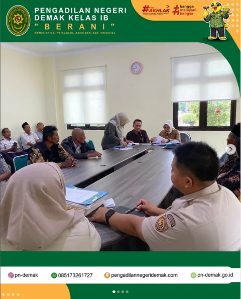 Menindaklanjuti Surat Permohonan BPN yang pada pokoknya menjelaskan pemutusan hak atas tanah untuk pembangunan Jalan Tol Semarang–Demak, PN Demak melaksanakan Penyerahan/Pencairan Uang Ganti Rugi sebagai wujud kepastian hukum, keadilan dan perlindungan hak masyarakat dalam pengadaan tanah untuk kepentingan umum.