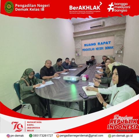 Rapat Monev SIPP dan Teknis Persidangan Konten : berita kegiatan Telah dibaca : 55 Kali Rabu 07 Agustus 2024 telah dilaksanakan rapat monev SIPP dan Teknis Persidangan yang dipimpin oleh KPN Demak dan diikuti oleh Hakim,Panitera,Para Panmud, Panitera Pengganti dan Jurusita/Jurusita Pengganti « kembali