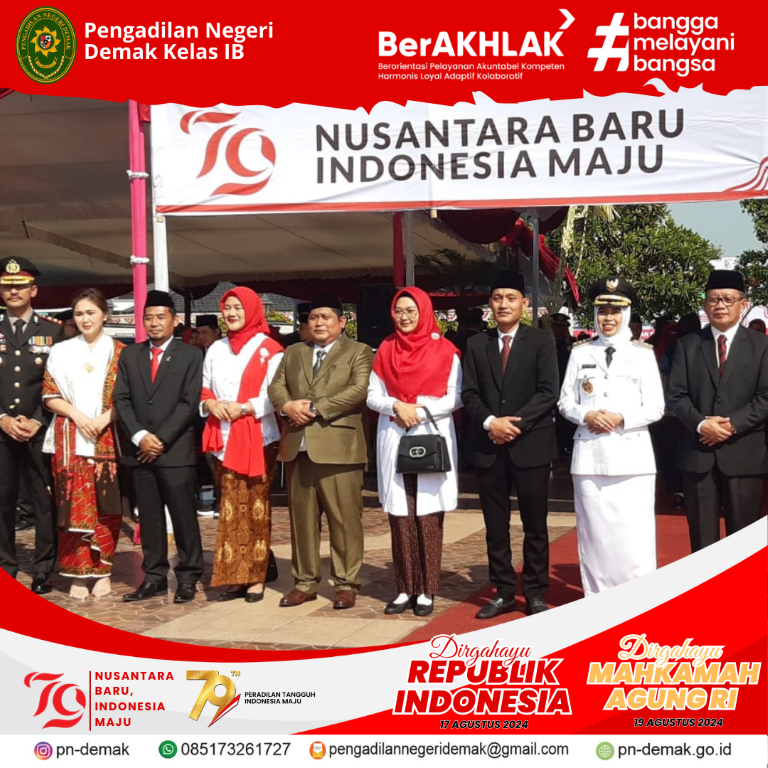 Minggu 18-08-2024, Ketua Pengadilan Negeri Demak dan Ketua Dharmayukti Karini Cab. Kab Demak turut hadir dalam Karnaval Kemerdekaan dalam memeriahkan HUT RI Ke-79 yang diadakan oleh Pemda Kab.Demak