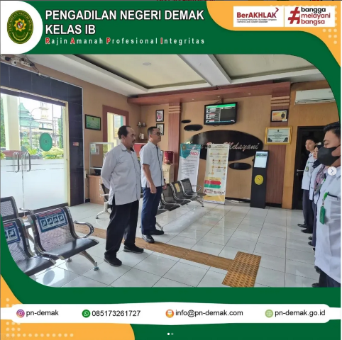 Briefing Pelayanan Terpadu Satu Pintu (PTSP) Konten : berita kegiatan Telah dibaca : 31 Kali Briefing Pelayanan Terpadu Satu Pintu (PTSP) Pengadilan Negeri Demak, Senin 23 September 2024. Briefing PTSP dilaksanakan pagi dan sore hari. « kembali